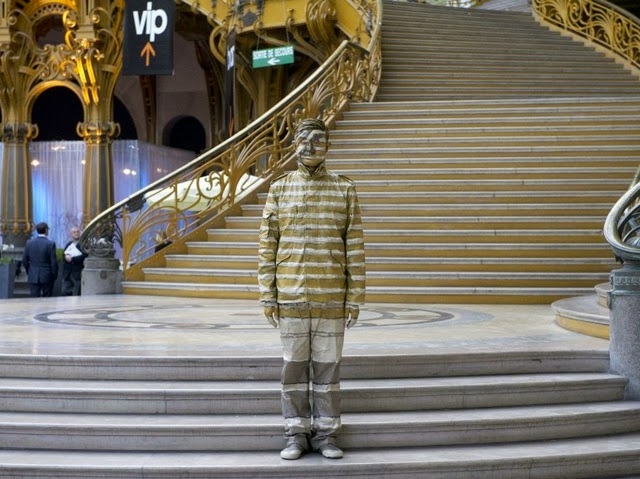 Sa technique est toujours la même : il repère un endroit puis prépare les couleurs et l'angle de vue puis il se fait peindre par des assistants (sur cette photo, il s'agit d'étudiants allemands). Le résultat est assez stupéfiant :