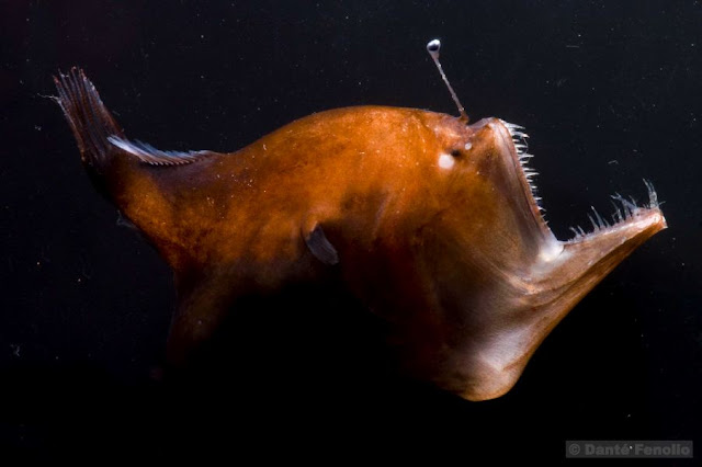 Les baudroies des abysses sont une famille de poissons vivant entre 1000 et 3000 mètres de profondeur, là où il fait plus noir que dans la cervelle d'un adepte des théories du complot. Comme tous les animaux des milieux extrêmes, ces baudroies présentent des caractéristiques pour le moins originales comme cet appendice lumineux situé sur l'avant de la tête de Melanocetus johnsoni, lui permettant d'attirer des proies victimes de leur curiosité.