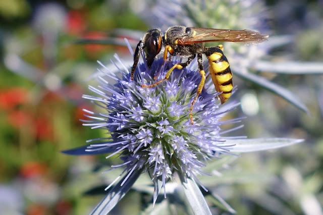 Moi qui observe depuis longtemps les effets du réchauffement climatique dans mon jardin normand, je dois dire que les arrivées du frelon asiatique (Vespa velutina), de la guêpe potière espagnole (Delta Ungiculatum) ou de la jolie guêpe mexicaine (Isodontia Mexicana) m'enchantent au plus haut point car les insectes et les araignées m'ont appris depuis longtemps que la beauté se trouvait dans la diversité.