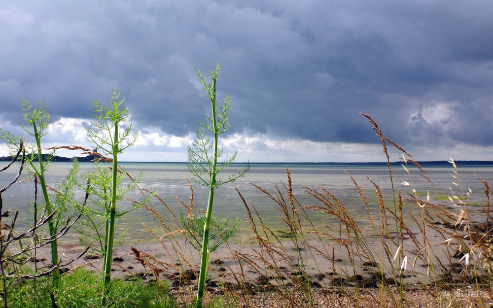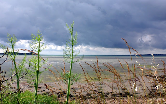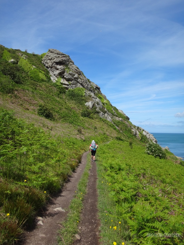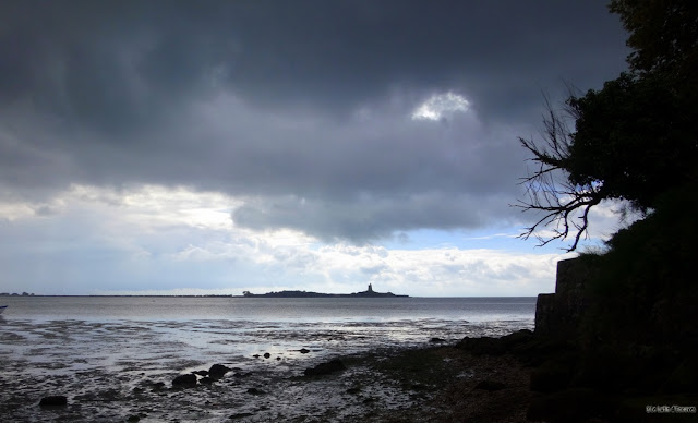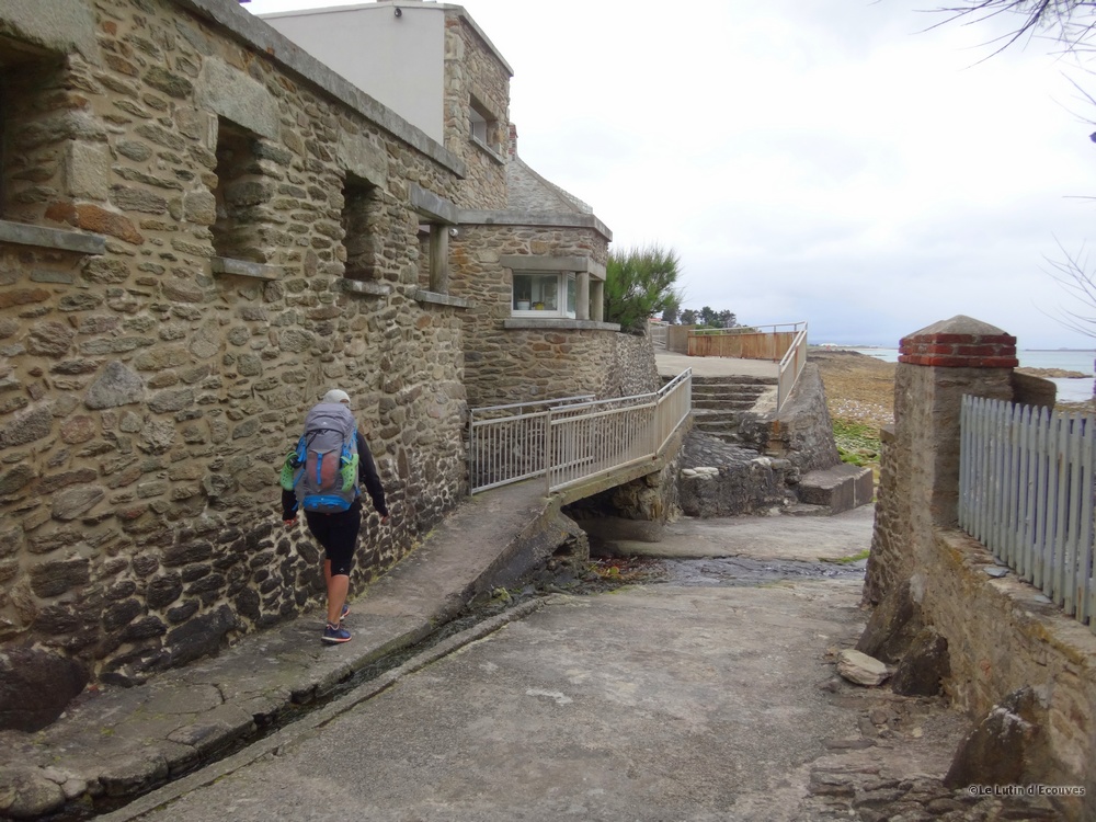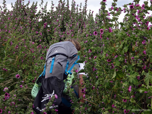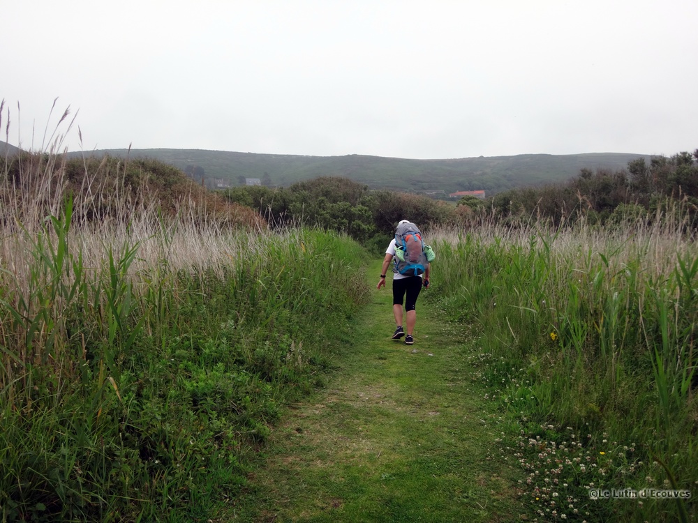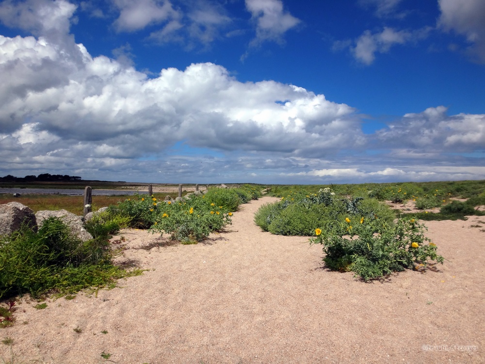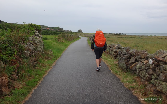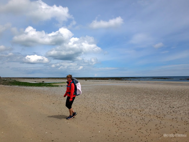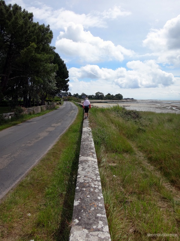 Celui-ci est à marée basse mais pas question de le traverser avec nos sacs à dos. Il faudra bien suivre le GR qui emprunte tant bien que mal des routes de campagne et des chemins parfois transformés en champ de poireaux ou de carottes par l'agriculteur local soucieux de rendement.
