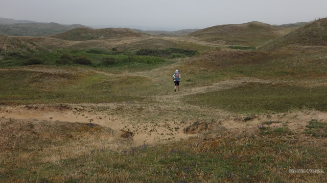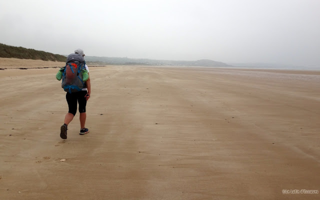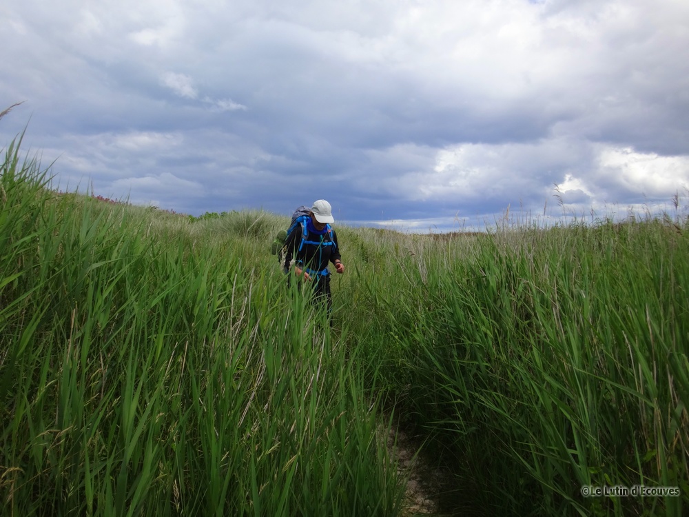Etape 13 : Pirou-Agon Coutainville - 24 juin 2019 - 16 km La dernière de nos quatre heures de pluie en seize jours, nous partons de Pirou sous une gentille averse dont l'eau est aussitôt absorbée par la dune.