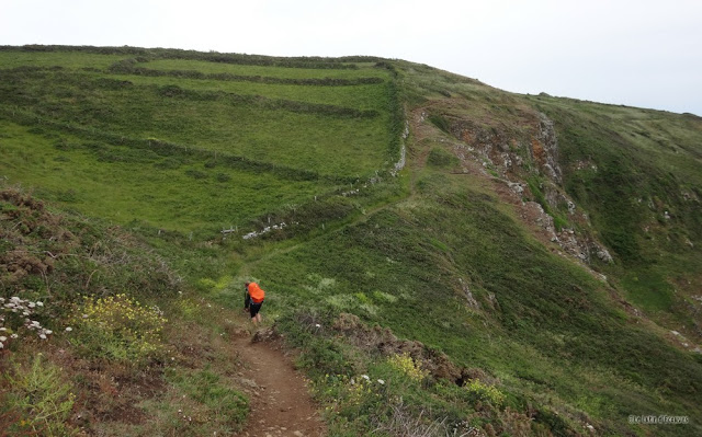 Jusqu'au pique-nique du midi, nous ne rencontrerons absolument personne lors de ce long contournement, et pour cause : le chemin a peu d'accès et le terrain est particulièrement sauvage. Il faut parfois un peu d'imagination pour se croire sur un sentier balisé...