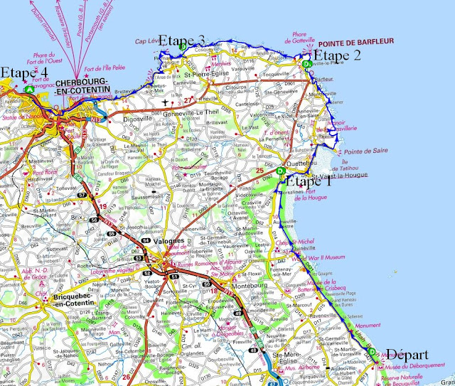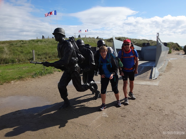 Depuis le début de notre aventure, nous avions l'habitude de dire bonjour aux personnes que nous rencontrions comme nous le faisons systématiquement en notre bonne forêt d'Ecouves. Que ce soit vers Barfleur, la Hague ou sur les dunes de Lindbergh, nous avions toujours reçu un salut en réponse. Et voilà que les passants croisés ne répondent pas à nos civilités, fuyant même notre regard. Perplexes, nous gagnons notre hôtel où une belle Coutainvillaise nous accueille chaleureusement.
