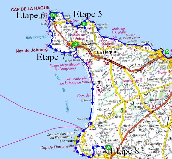 Ce n'est pas vraiment une étape mais un sas. Après avoir traversé des pays sauvages et souvent déserts, nous entrons à partir de St Martin de Bréhal dans une zone plus urbaine qui va jusqu'à Granville.