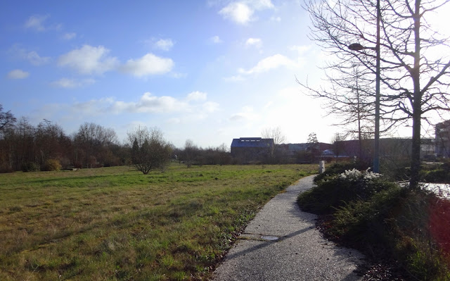 L'avantage quand on habite une préfecture de 25 000 habitants, c'est qu'on se retrouve vite dans la nature. Je pars vers l'est pour franchir la Sarthe à 1000m de chez moi. Vu les deux séances précédentes et celle de demain (2h15 de long dont 12km à 11,3 km//h), ce sera de la balade à 9 à l'heure. Une heure et huit minutes pour 10,5 km dans la campagne cette fois sarthoise. Alternance de chemins et petites routes, ce n'est pas que j'apprécie cette solitude imposée du coureur de fond mais je la supporte. Un compagnon impromptu sort à un moment d'une entreprise de BTP : l'énorme chien de garde a profité du portail ouvert pour me courir derrière. L'avantage quand on est un Lutin, c'est que l'on comprend le langage des animaux. Ce mastard-là, inutile de lui crier dessus. Je lui donne ma main à sentir et je le caresse tout en lui disant "Bon chien". Je marche, cependant, accompagné par le molosse qui fait consciencieusement son boulot. Il m'accompagne une centaine de mètres puis je lui dis de retourner voir le maître, ce qu'il fait, apparemment content de lui. Je termine en rentrant dans mon département de l'Orne, traversant à nouveau la rivière Sarthe.