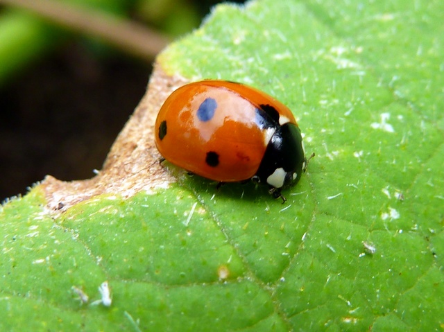 ... puis au rouge. La coccinelle a enfin achevé sa métamorphose. Les anglais, plus poètes que nous, la nomment "Ladybird", ce qui peut se traduire par "Dame-Oiselle".
