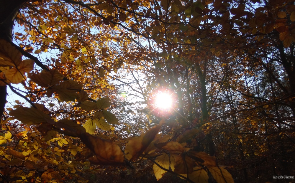 Peu de promenades photographiques ce mois-ci. La naissance d'une deuxième petite-fille m'a bien occupé l'esprit et c'est légitime ! Quatre jours après sa venue, je me promène en forêt et réalise ce cliché. On est à la fin de la période magique lors de laquelle les couleurs explosent. Mon petit TX30 me gratifie de cette photo (encore un contre-jour !) sur laquelle on peut voir le soleil nimbé de rose transpercer le dense feuillage des hêtres. Le Lutin appelle cela "La Fée Lumière", moi je pense à ma deuxième petite fée qui vient elle aussi illuminer mes années d'automne.