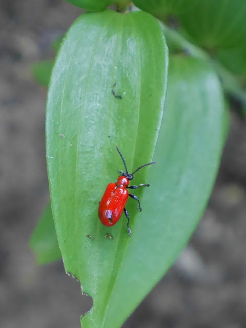 Ce petit bijou de criocère du lys passe son temps à copuler et à manger. Et pas qu'un peu, vos beaux lys peuvent être ratiboisés en peu de temps par cet insecte et ses larves qui, pour être plus discrètes que l'adulte, se dissimulent sous leurs propres excréments. Cet insecte étant fort beau, je conseille de n'en garder que quelques spécimens et de prélever les autres à la main pour mettre un maximum d'adultes chez le voisin.
