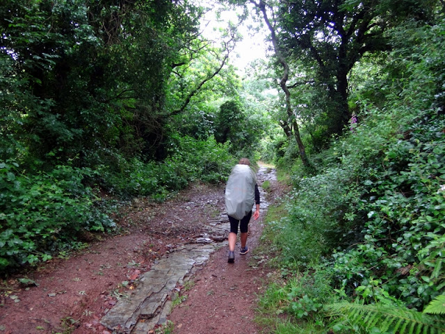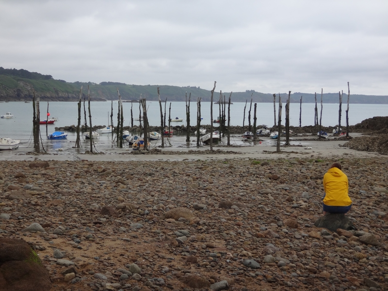 Le terrain est encore bien costaud et nous devons parfois descendre avec la prudence d'une hyène gravide. Une fois sur le port, nous avisons une crêperie dans laquelle nous nous restaurons à l'abri, bonne idée car la pluie se met à prendre des airs tropicaux. Une heure après, les précipitations redevenant modérées, nous prenons la direction de St Quaix.